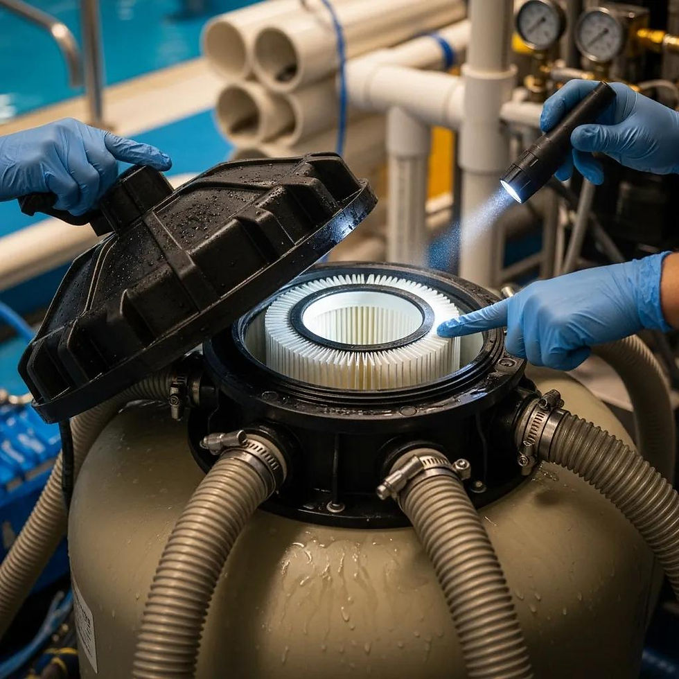 Pool Filters: Filters clear debris and keep water safe. Common issues include clogging, torn cartridges, and reduced filtration efficiency.